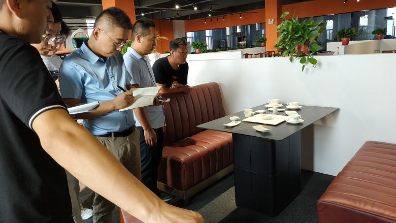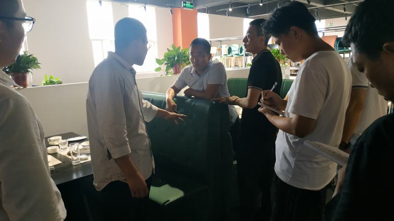 隨后,周經(jīng)理帶領(lǐng)新伙伴挨個(gè)對展廳里面的餐桌椅及電動餐桌和卡座沙發(fā)做了深入講解,現(xiàn)場不明白的問題新員工也都及時(shí)的得到了清晰地答復(fù)。在后面的互動環(huán)節(jié),周經(jīng)理還隨機(jī)點(diǎn)名讓新員工對展廳里面的餐桌的材質(zhì)進(jìn)行回答,還包括電動餐桌的尺寸計(jì)算,餐椅配備數(shù)量計(jì)算等基礎(chǔ)問題進(jìn)行了考核,大家的回答幾乎都是正確的。