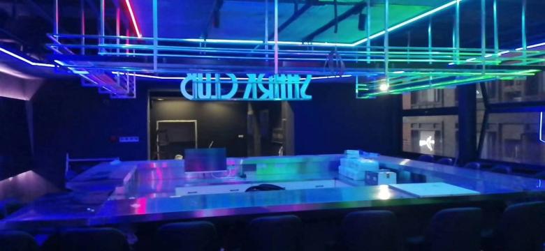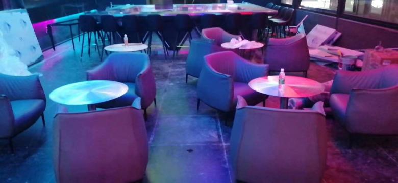 下圖是由博菲克定制家具廠為SHARK CLUB音樂餐廳定做的一批餐桌椅和吧臺(tái),照片是在安裝之后現(xiàn)場拍攝的。