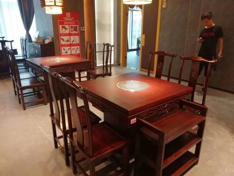錦湯火鍋店的裝修設(shè)計(jì)風(fēng)格為中式火鍋店,所以,火鍋?zhàn)雷雍筒鸵尉ㄗ鰹閷?shí)木火鍋?zhàn)溃硗?,在休息區(qū)和侯客廳還定做了幾套供顧客休息的餐廳專用休閑沙發(fā)。整個(gè)火鍋店看上去古樸典雅,充滿了文化氣息。試想一下,來到這里就餐,在這香濃的火鍋與朋友把酒言歡,是何等的快哉!