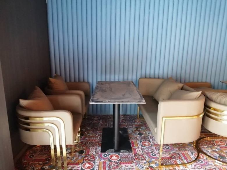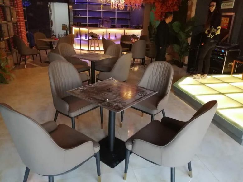 無烊音樂餐吧采購的桌子采用巖板臺面和鐵藝桌腿組合而成,巖板餐桌椅大氣耐用,特有的石材色調(diào)能夠迅速提升店面的檔次??ㄗ嘲l(fā)定制以及沙發(fā)椅均有嚴(yán)格要求,我廠依據(jù)客戶需求完美呈現(xiàn)出了家具成品。