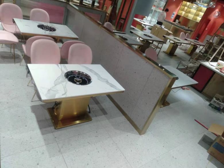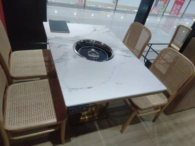 經過兩個多小時的現場擺放組裝調試,大理石火鍋桌全部可以正常運轉,本次安康口福緣火鍋店餐桌椅項目順利收尾,祝福尊貴的老板開業(yè)大吉,生意興隆,財源廣進!