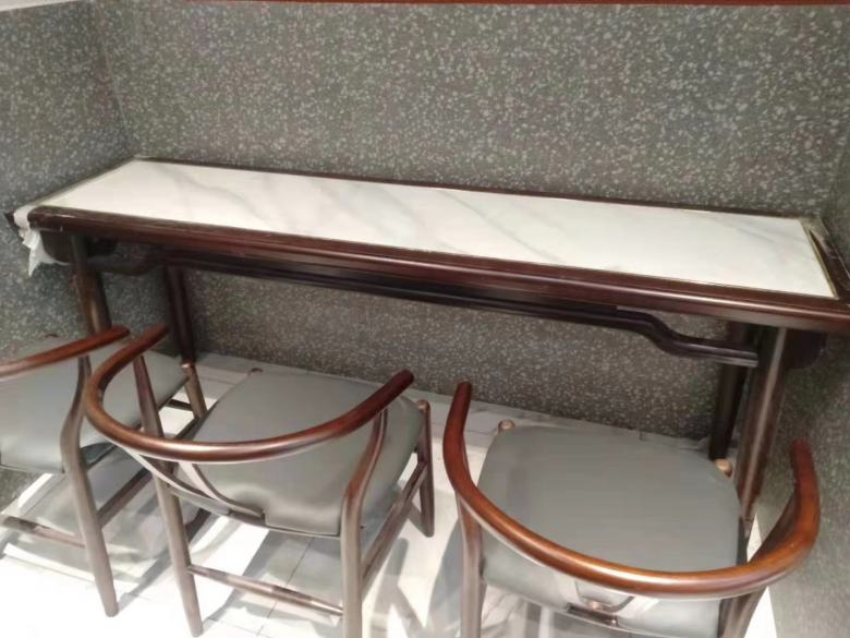 在跟客戶確認(rèn)了材質(zhì)和尺寸之后,工廠生產(chǎn)部就安排了加工,不到20天的時(shí)間,餐桌椅已經(jīng)完工??蛻舻綇S驗(yàn)收后,廠里一刻也不敢耽誤,即刻安排車輛和安裝師傅前往現(xiàn)場進(jìn)行餐桌椅擺放。