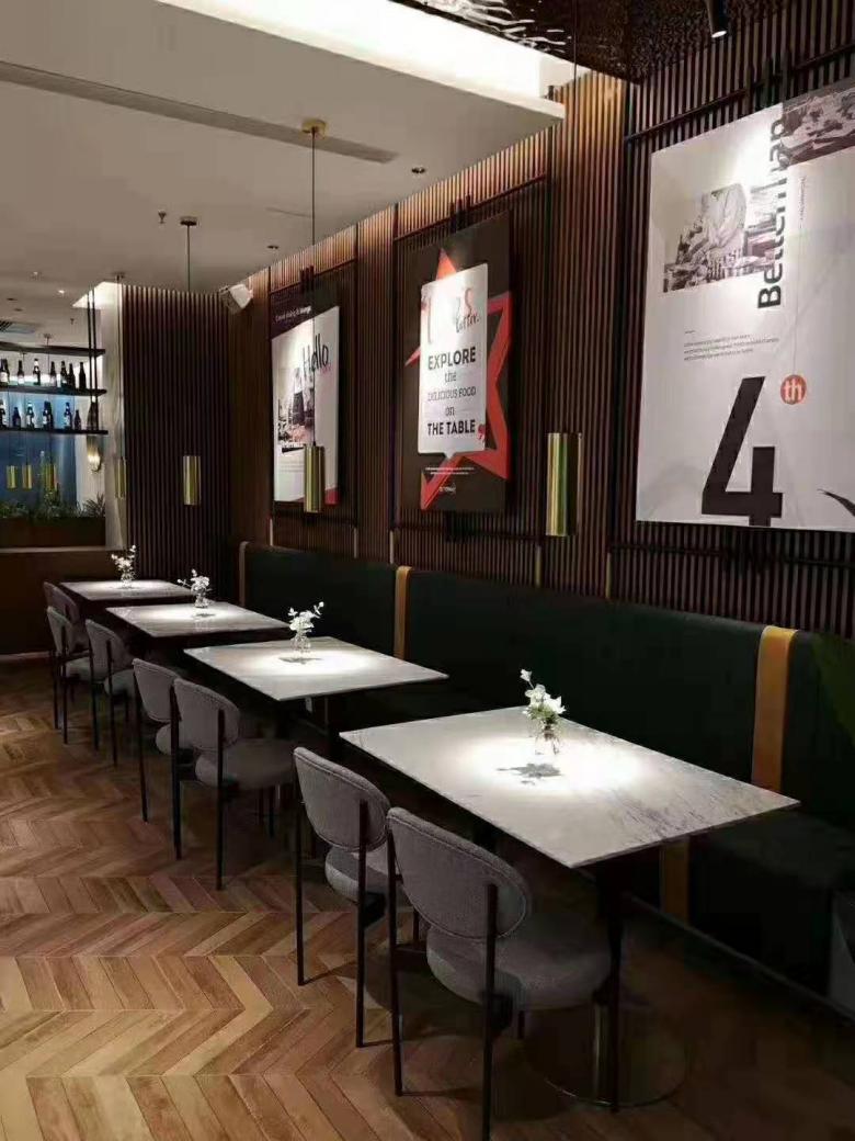 西安意風小鎮(zhèn)西餐廳就屬于后者??蛻羟宄约旱昝娴男枨?,因此,對于西安餐桌椅批發(fā)市場里面的廉價餐桌椅,她壓根就沒有考慮。而我廠業(yè)務經(jīng)理在介入這個項目之后,通過多次溝通,明白了客戶的真實需求。李總喜歡輕奢風格的餐桌,恰恰在展廳里有一款簡約風格的巖板餐桌瞬間捕獲了她的心,這款巖板桌子非常大氣有質(zhì)感,李總毫不猶豫的就選定了它!后面,李總也看上了我廠擺放的餐廳卡座沙發(fā)樣品,這是一款特別流行的高背板款式,是西餐廳里面使用最多的款式了。