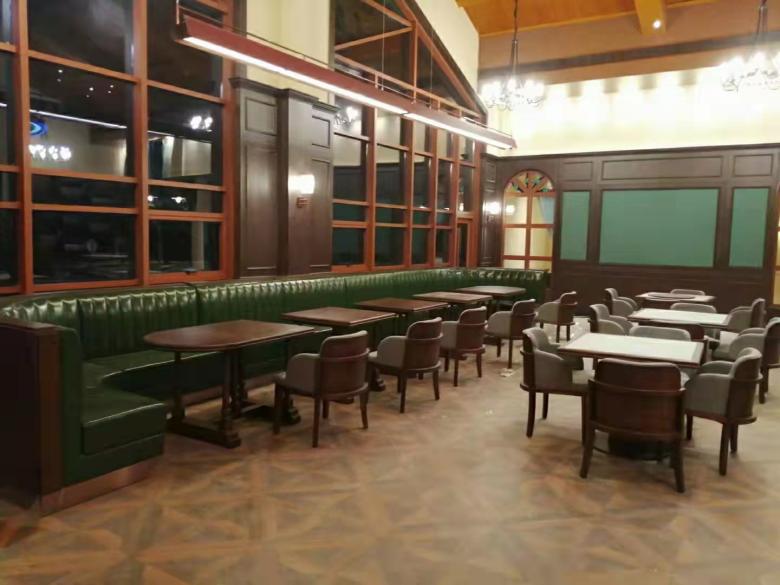 本項(xiàng)目西餐廳位于灃峪口的西安秦嶺野生動(dòng)物園旁邊,由我廠依照客戶提供的設(shè)計(jì)圖進(jìn)行定制和還原,餐桌椅精選優(yōu)質(zhì)材料制作,工藝精細(xì)講究,卡座沙發(fā)采用優(yōu)質(zhì)防燙耐磨皮革,大氣美觀??蛻魧?duì)我廠家具和服務(wù)人員的配合度給予了充分肯定和好評(píng)!