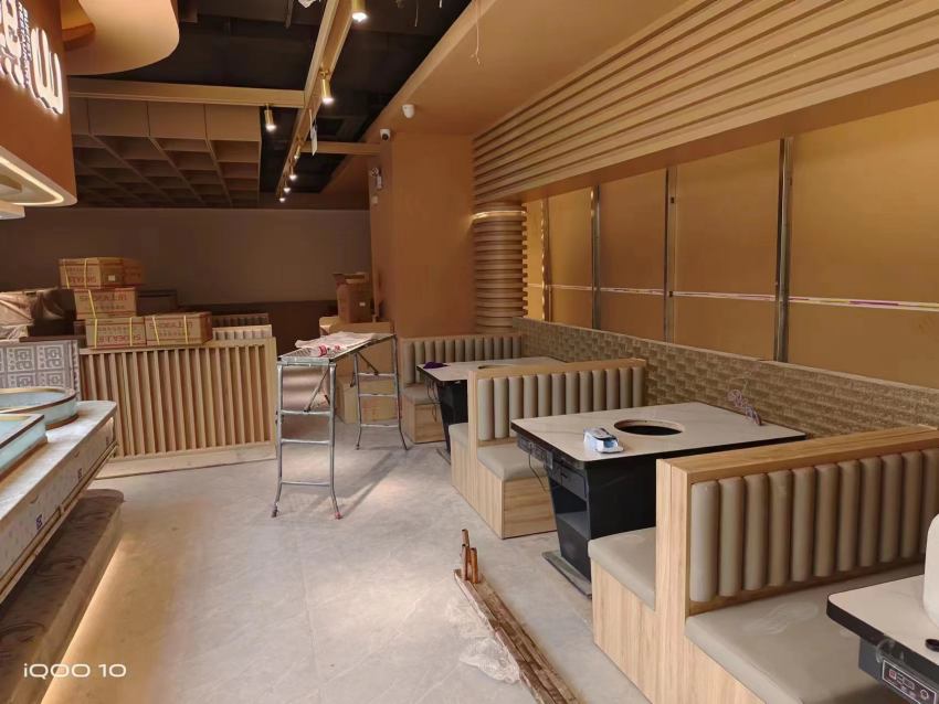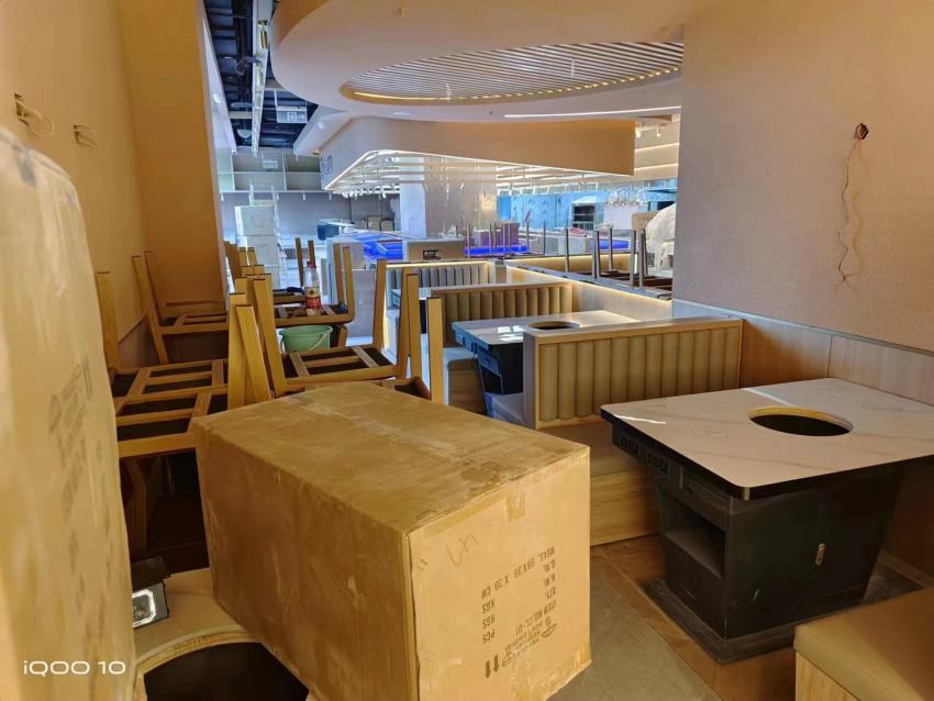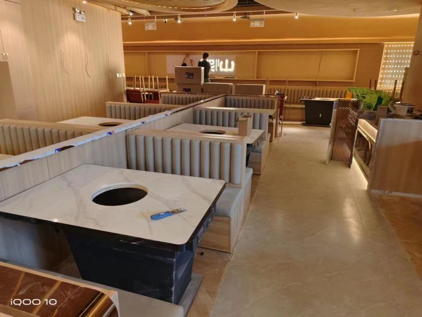 以下圖片是來自西安博菲克家具廠售后安裝部的伙伴在漢熙山料理級海鮮自助烤肉餐廳交貨的場景,工人將卡座沙發(fā)按照布局圖要求一一組裝擺放到位,為確??蛻粼嚑I業(yè)不受影響連續(xù)作戰(zhàn),圓滿完成了全部餐桌椅安裝。
