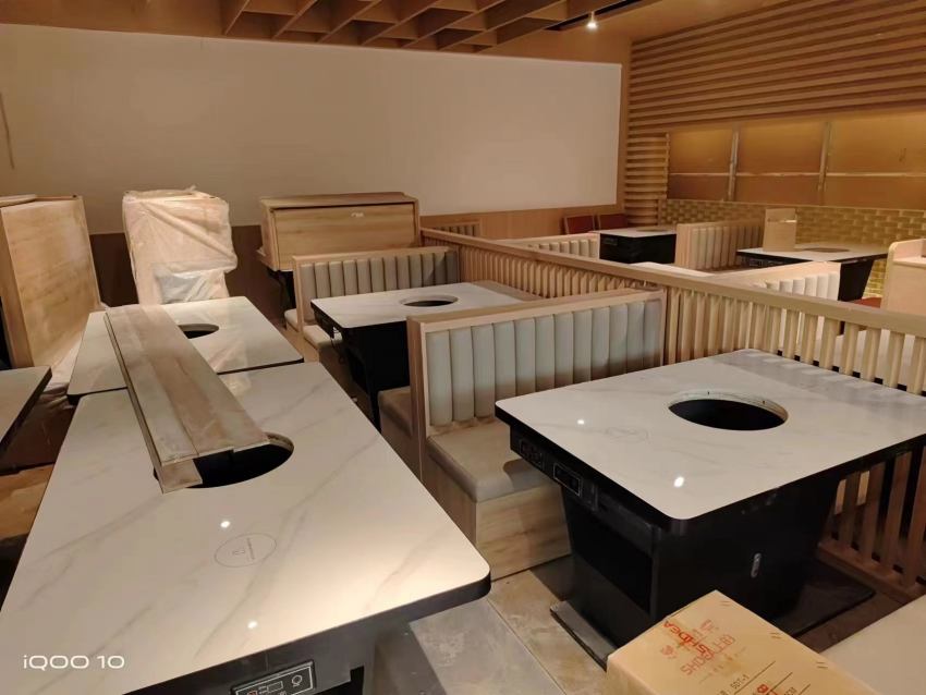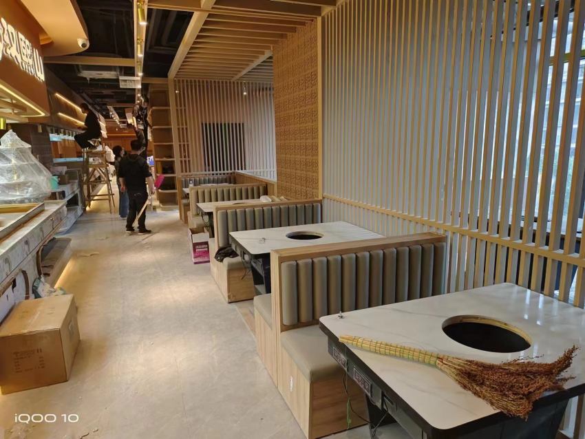 西安漢熙山料理級自助烤肉餐廳餐桌椅及沙發(fā)卡座交貨完成