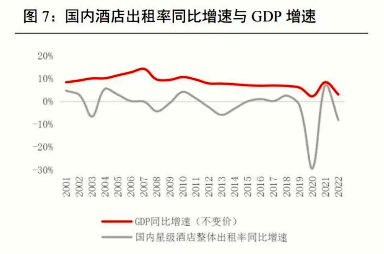 我們認(rèn)為 GDP 對酒店行業(yè)的影響在逐漸減弱,行業(yè)內(nèi)部供需結(jié)構(gòu)調(diào)整對酒店行業(yè)更重要。從中、美兩國入住率同比增速和 GDP 增速趨勢可以看出,兩者呈現(xiàn)分階段相關(guān)的特點(diǎn)。2008-2009、2010-2012 兩個階段入住率同比增速和 GDP 增速相關(guān)性較大,2013 年之后影響入住率的主要因素轉(zhuǎn)向行業(yè)內(nèi)供需結(jié)構(gòu)調(diào)整,疊加限三公、疫情等突發(fā)事件影響,相關(guān)性逐漸減小。